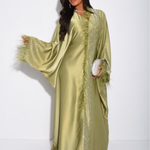 Butterfly Abaya with Crystals | Feather Trim Kaftan | Embellished Evening Abaya | Luxury Eid Dress | Statement Bridal Abaya