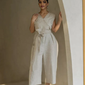 Beige Linen Jumpsuit | Wide-Leg & Lace-Up Back | Premium Linen Wide-Leg Jumpsuit | Minimalist Summer Dress | Beach Wedding Guest Outfit