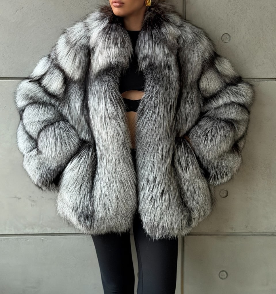 Silver Fox Fur Poncho Coat | Luxurious Hooded Fur Stole | Statement Winter Wrap | Natural Fox Fur Outerwear