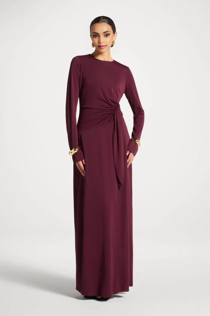 Asymmetrical Waist Ruched Maxi Dress | One Shoulder Long Gown | Modest Evening Dress | Eid Wedding Guest Dress