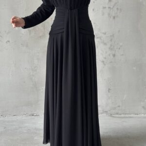 Azra Hijab Evening Dress Brown, Modest Pleated Evening Dress, Elegant High Neck Dress, Luxury Hijab Dress, Wedding Guest Dress